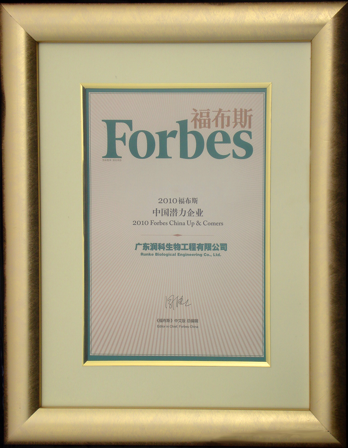 廣東潤(rùn)科生物工程有限公司入選為中國最具潛力企業(yè)100強(qiáng)