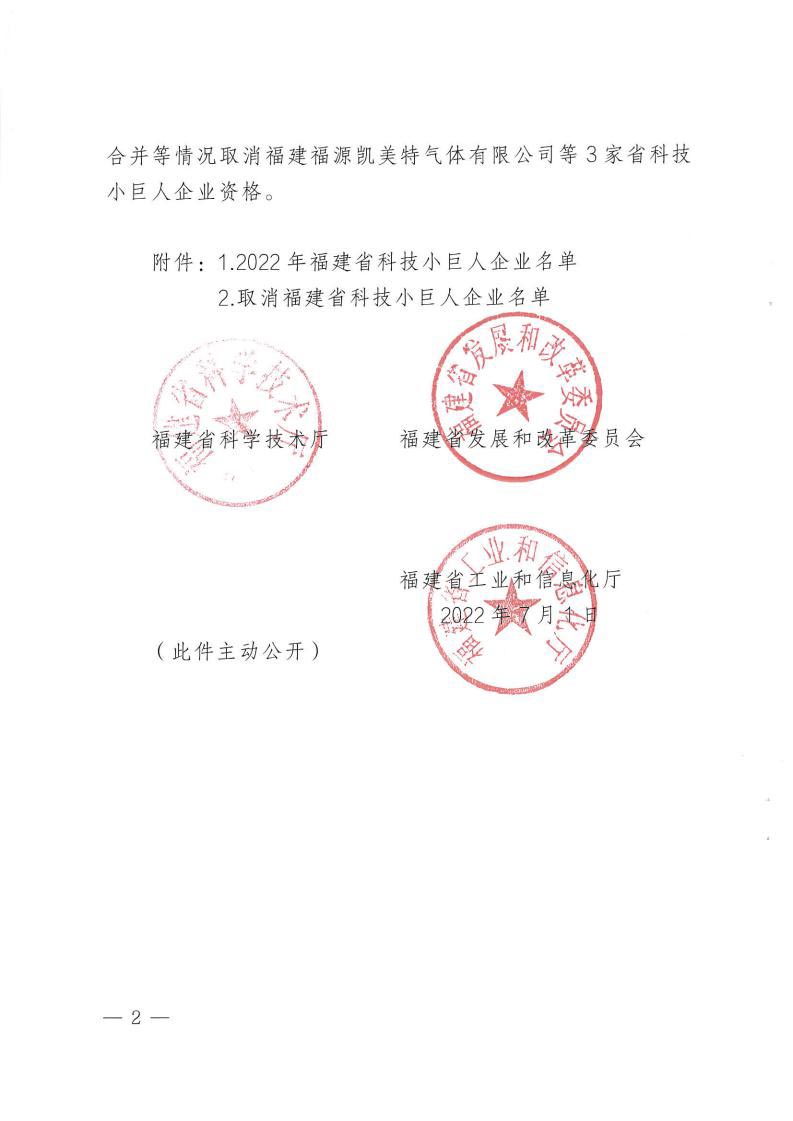 ? 2022年7月1日由福建省科學(xué)技術(shù)廳、福建省發(fā)展和改革委員會(huì)、福建省工業(yè)和信息化廳認(rèn)定潤(rùn)科生物工程(福建)有限公司為福建省“科技小巨人”企業(yè)。