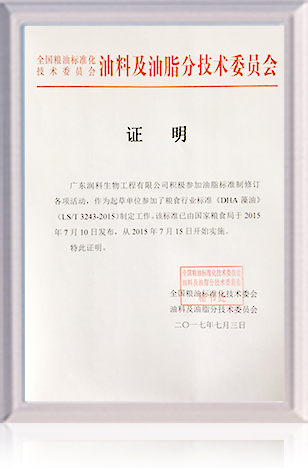 參與全國(guó)糧油標(biāo)準(zhǔn)化技術(shù)委員會(huì)油料及油脂分技術(shù)委員會(huì)的《DHA藻油》行業(yè)標(biāo)準(zhǔn)的起草,并獲正式頒布執(zhí)行